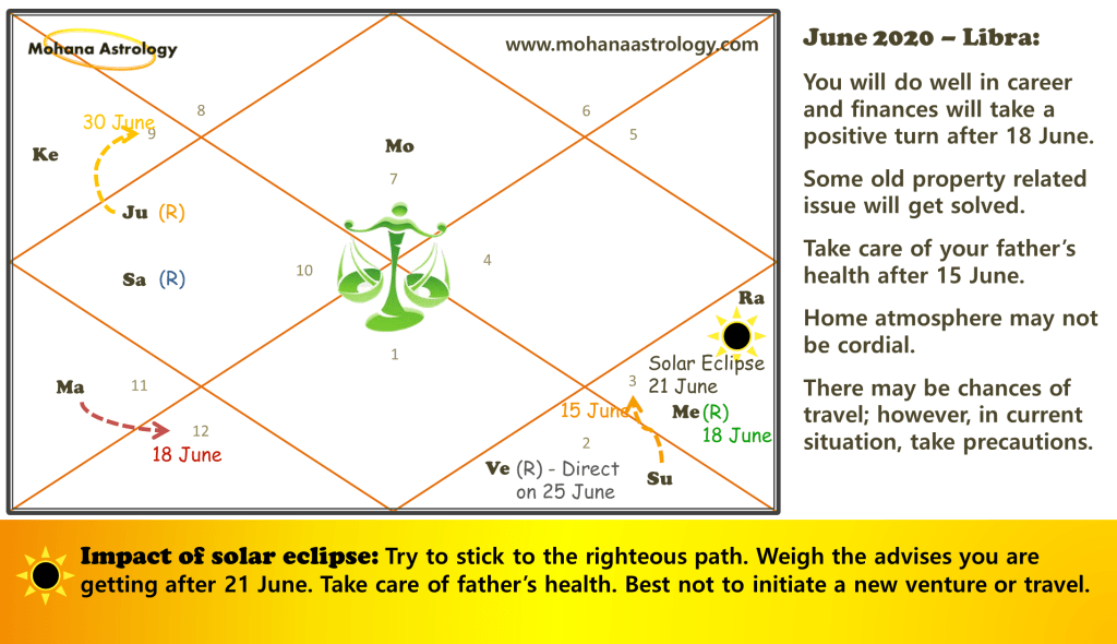 The time between 18 June and 25 June when all 4 planets are retrograde, and the solar eclipse is also taking place, there will be a lot of tension and confusion all over the world. It will be difficult to understand what is true and what is not. The financial situation all over the world may tumble down further. Time from 18 June to the end of the month is also shaky for economy because both Jupiter and Mercury will be retrograde and Mercury will get combust from 21 June.