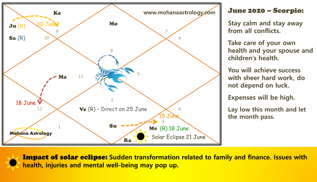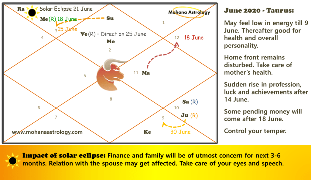 June 2020 is a very eventful month from astrological point of view. We have four planets, Jupiter, Saturn, Venus and Mercury retrograde and both lunar and solar eclipses taking place this month. June is no doubt the most challenging and confusing month of 2020. Let us see how June 2020 is going to unfold for all of you. This is a generalist overview; the actual results will vary as per your own birth chart and the dasha / antardasha that you are going through.