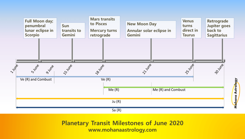 Let me first give you all a snapshot of planetary movements of June. I shall write about the effects of these movements.